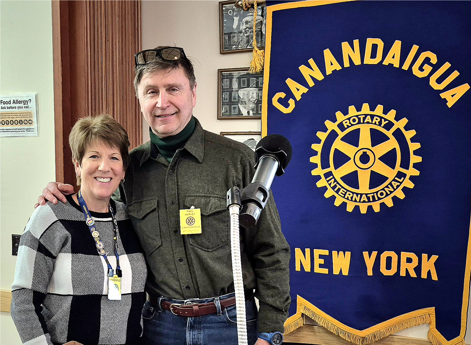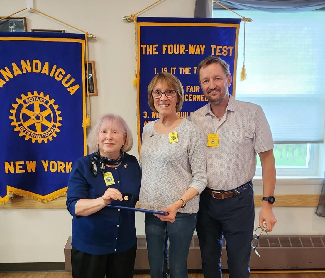 Paul Harris recognition was awarded to Kim and Greg Kane, both of whom are music teachers in the Canandaigua School District. Kim teaches music at the Primary School and Greg at Canandaigua Academy. They were recognized for the outstanding dedication they both have demonstrated to enriching students lives through music.