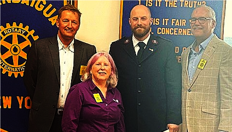 Salvation Army Captain Jeremiah Eisley (second from right) becomes a Canandaigua Rotarian