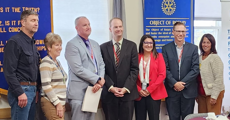 On October 9th, Canandaigua School Superintendent, Jamie Farr was inducted as the newest member of our club. Canandaigua Schools joined as a 'Corporate Member', so along with Mr. Farr, were associate members Matt Schrage, Sarah Callahan, and Matt Fitch. (Picture, from left to right: President Elect Dr. Paul Harvey, Judi Gorenflo, Jamie Farr, Matt Schrage, Sarah Callahan, Matt Fitch and Donna Cator)