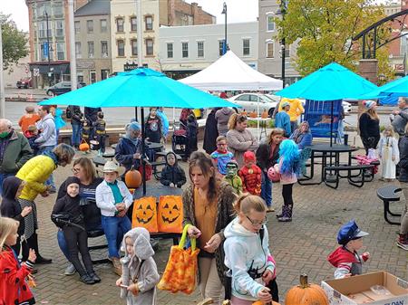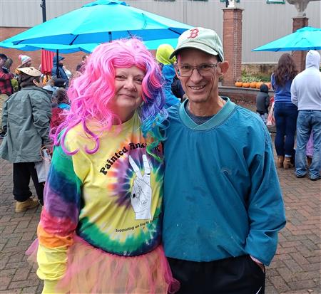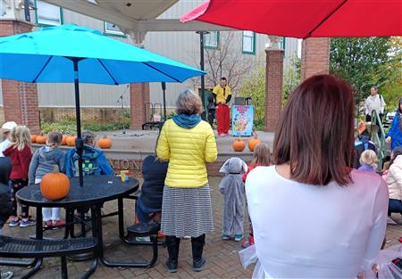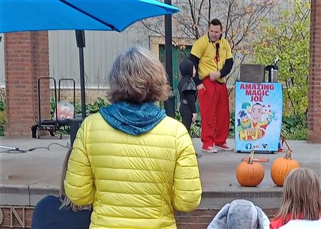 Rotarians distributed pumpkins to kids for decoration, but the damp rainy weather hampered some.