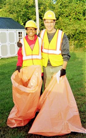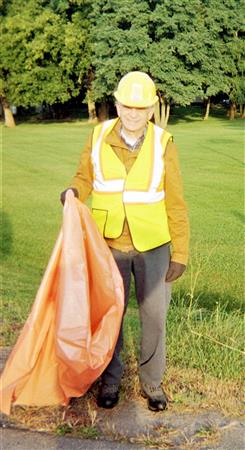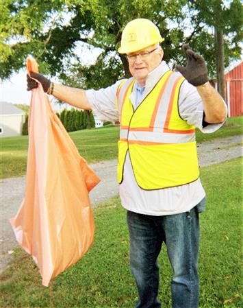 On a picture perfect Saturday the Canandaigua Rotary Club put together a team of highway crew volunteers to walk the trenches of Routes 5 & 20. They may have been seen by their cute hats, reflective gear, colorful orange garbage bags, and their sharp poking sticks.