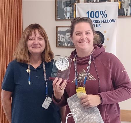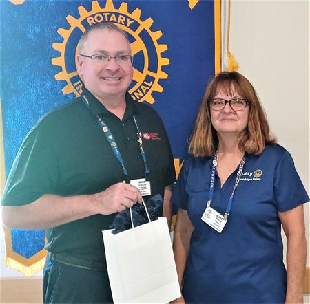 Club President 2021-2022 Mike Schiller was honored with a plaque. Also honored was Club President 2020-2021 Lynn Holcomb.