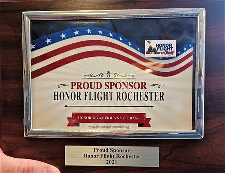 Our Club received a plaque for the support we lent the Honor Flights of Rochester.
