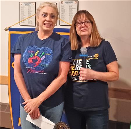 Kim is our lunch planner, dietitian, chef, table setter, table cleaner, dishwasher, always with a smile, and ‘what can I get for you’ person. Pictured with her is Club President Marty Potter.