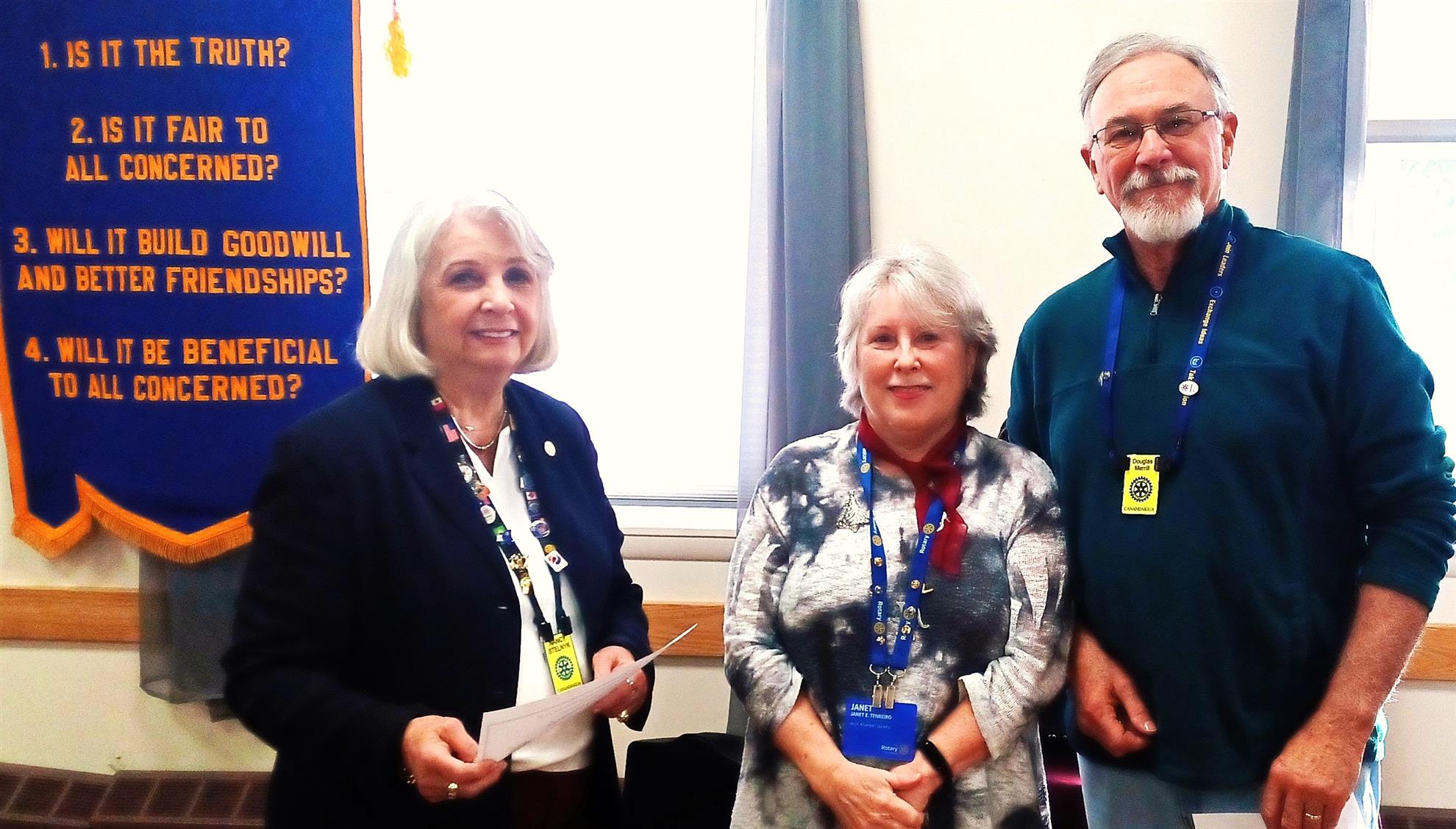 Two more members join the Polio Free+ Society: Past District Governor Janet Tenreiro is flanked by the new Polio Plus Society members Club President Nancy Stelnyk and Doug Merrill.