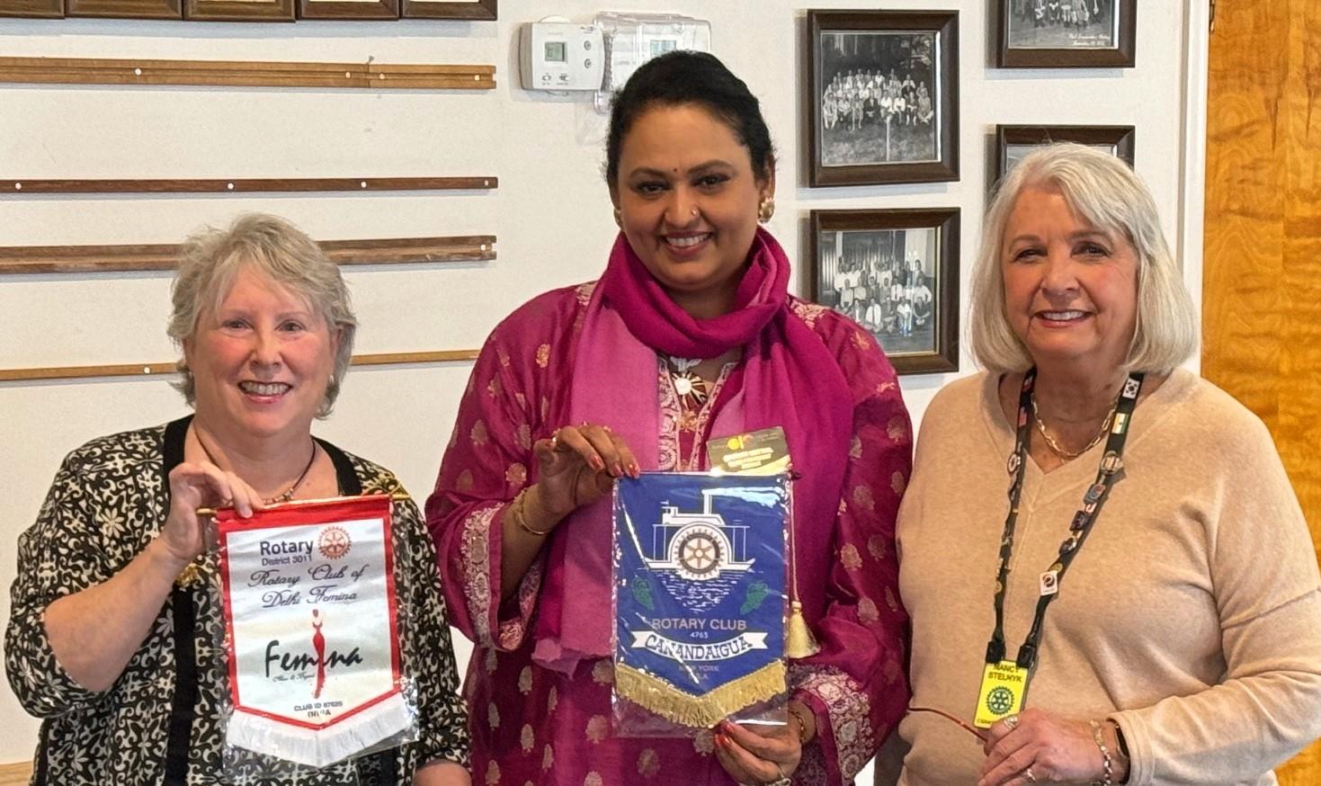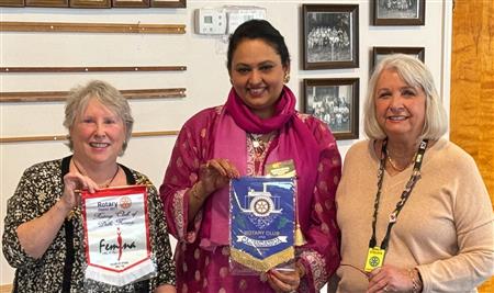 The Club was visited recently by Shruti Mittal from New Delhi, India. Shruti is President of her New Delhi club that is for women ONLY. When Rotarians visit another club, especially internationally, it is a tradition that both clubs exchange their flags.