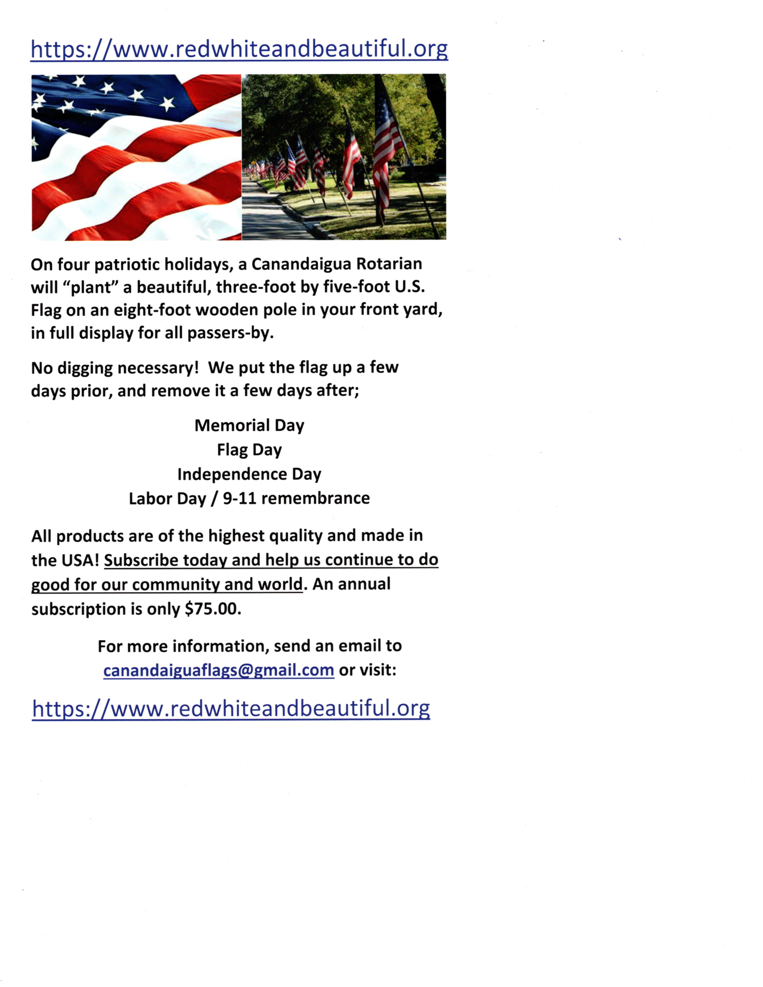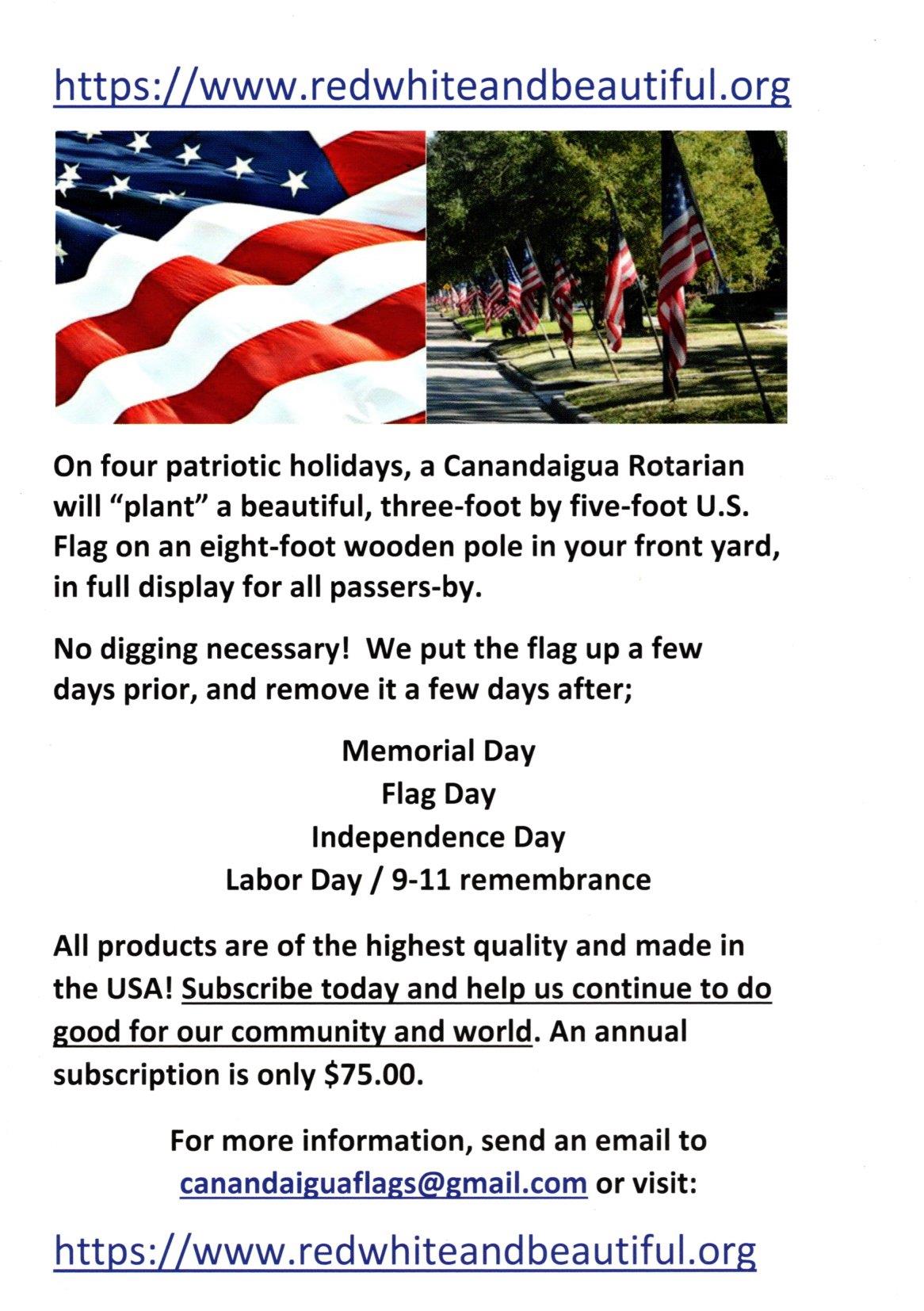 2025 Rotary Flag Program: Enroll & have a beautiful 3x5 flag deployed for you 4 times a year!