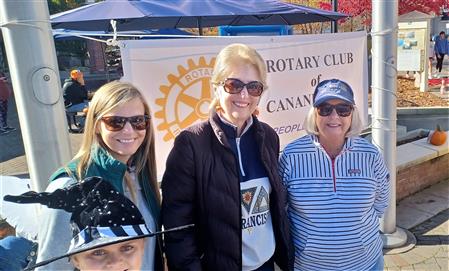 Rotarians distributed pumpkins to kids for decoration, but the damp rainy weather hampered some.
