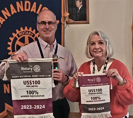 IR credit to Nancy Stelnyk's year 2023-2024 for 100% participation in the Foundation for $100.