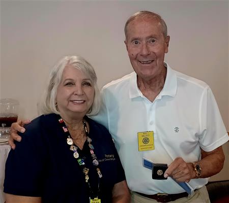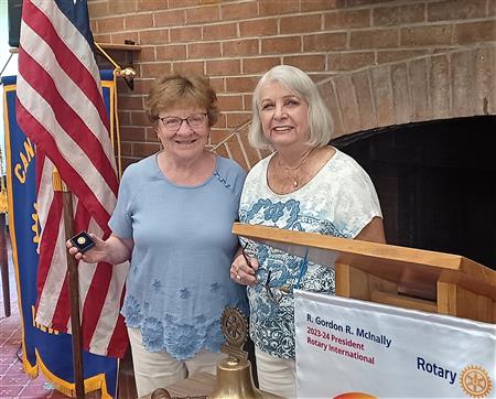 Doug Merrill received his Paul Harris +1 Fellowship on 5-30-24. Pictured w/ Doug is 2023-24 Club President Nancy Stelnyk.