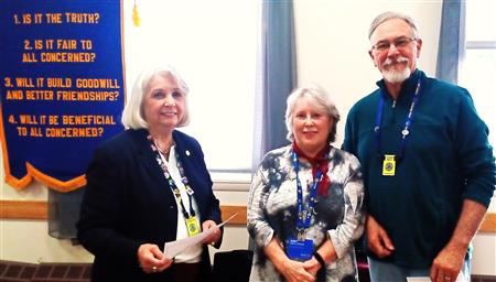Past District Governor Janet Tenreiro is flanked by the new Polio Plus Society members Club President Nancy Stelnyk and Doug Merrill.