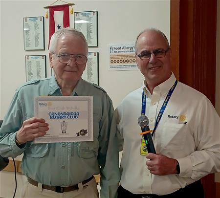 Recently, the Canandaigua Rotary Club honored Joe Delforte with a Benefactor Plaque and pin. He earned the honor because he voluntarily pledged to leave a gift to Rotary upon his passing.