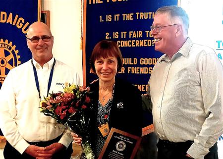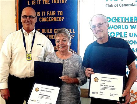 Mike Wilcox PH+8, Greg Gullo PH+2 and Mary Green PH+8 receive new Paul Harris Awards.