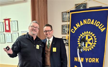 2025, Michael Bay Borelli was inducted and moved here from Custer, SD after retiring. He was a former Rotarian there and he and his wife wanted to move back to Canandaigua. Michael was a math teacher and school administrator.
