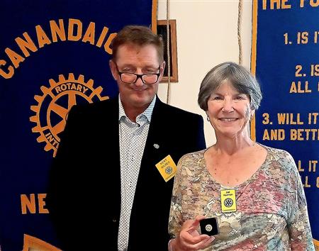 Carol Maue, and attorney, is inducted into the Canandaigua Rotary Club.