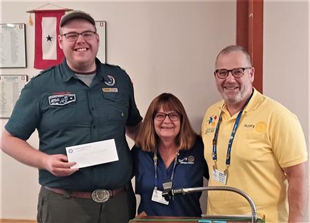 Canandaigua Rotary donates to the Glacier Lakes District Scouts. Pictured are Gareth Evans, Club President Marty Potter and District Governor Ralph Brandt.
